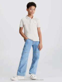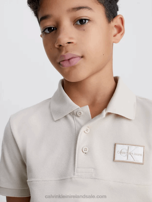 F64Z6229 Classic Beige Kids Calvin Klein Pique Polo Shirt