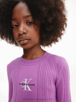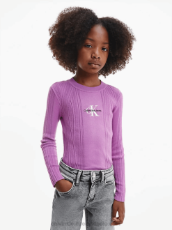 F64Z5899 Iris Orchid Kids Calvin Klein Slim Ribbed Logo Jumper