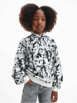 F64Z5863 Monogram Aop Whitecap Grey Kids Calvin Klein Logo Hoodie