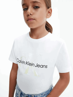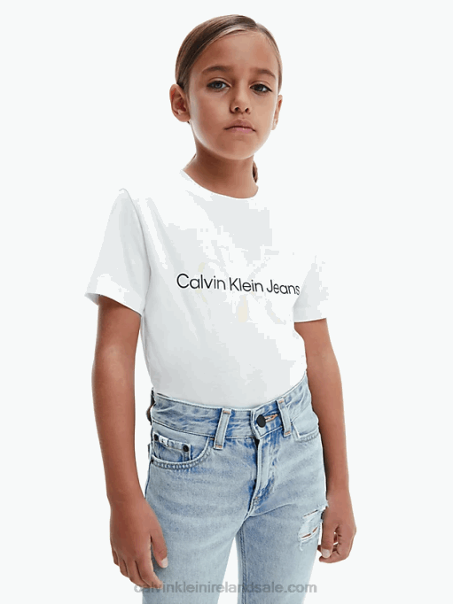 F64Z608 Bright White Women Calvin Klein Cropped Logo T-shirt