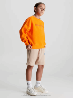 F64Z6238 Vibrant Orange Kids Calvin Klein Organic Cotton Terry Sweatshirt