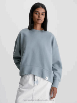 F64Z1893 Overcast Grey Women Calvin Klein Relaxed Ribbed Ottoman Sweatshirt