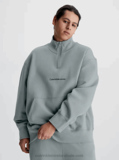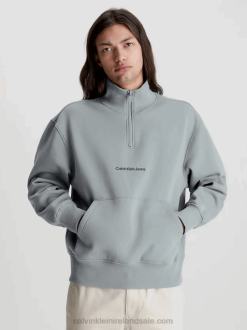 F64Z4079 Overcast Grey Men Calvin Klein Relaxed Zip Neck Sweatshirt