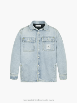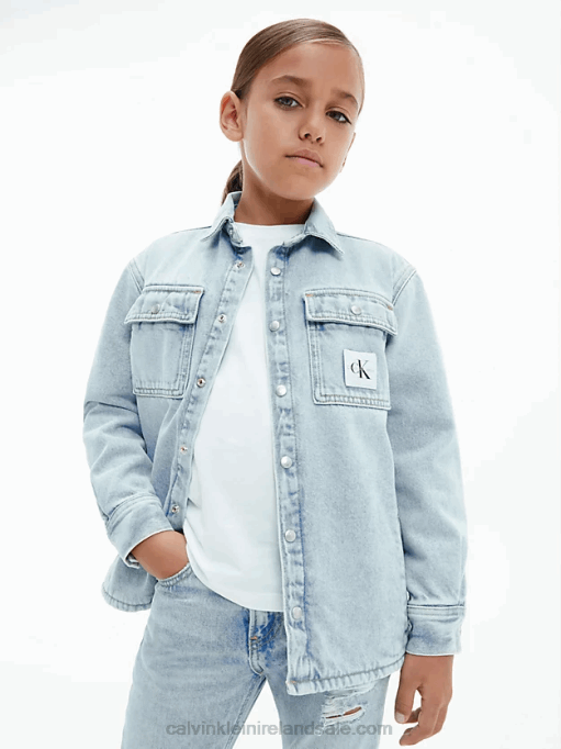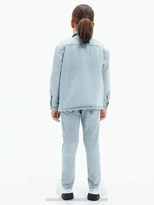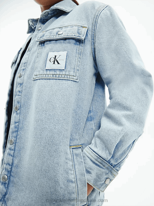 F64Z6280 Chalky Blue Kids Calvin Klein Oversized Denim Shirt Jacket