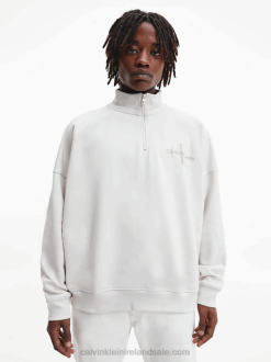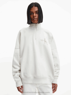 F64Z2433 Eggshell Women Calvin Klein Unisex Zip Neck Sweatshirt