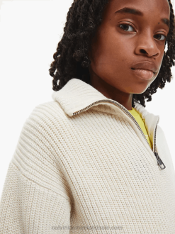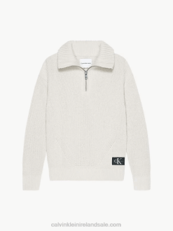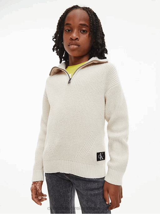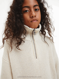 F64Z6290 Eggshell Kids Calvin Klein Unisex Zip Neck Jumper