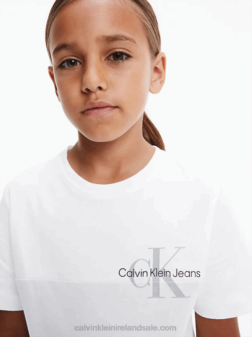 F64Z5753 Bright White With Colored Logo Kids Calvin Klein Organic Cotton Logo T-shirt