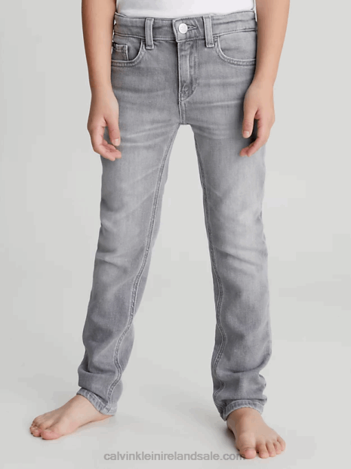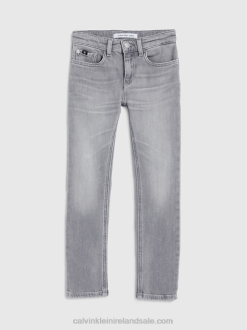 F64Z6297 Light Grey Kids Calvin Klein Mid Rise Slim Jeans