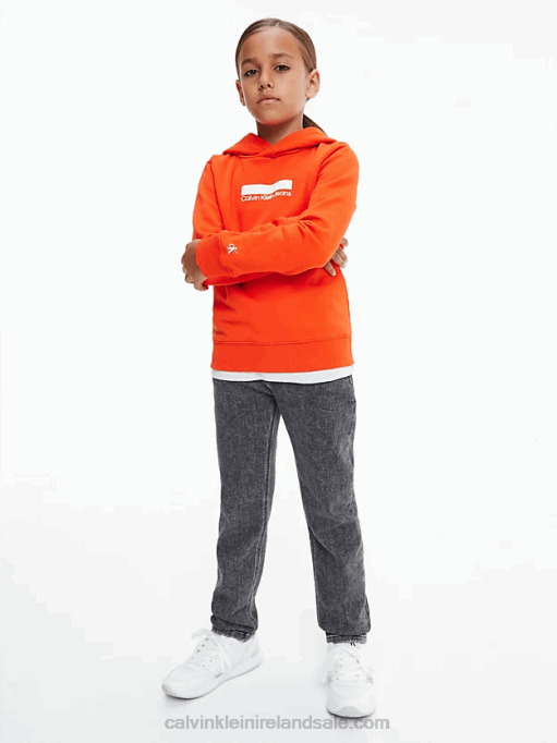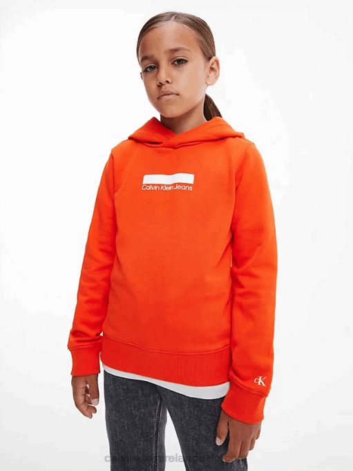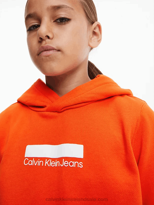 F64Z5802 Black Kids Calvin Klein Relaxed Cropped Logo Hoodie