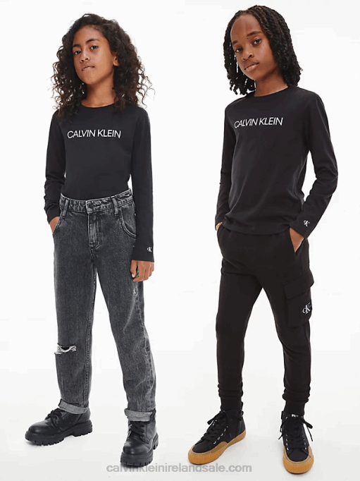 F64Z48 Black Women Calvin Klein Plus Size Long T-shirt Dress