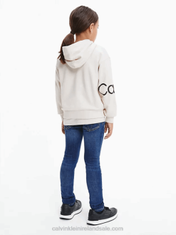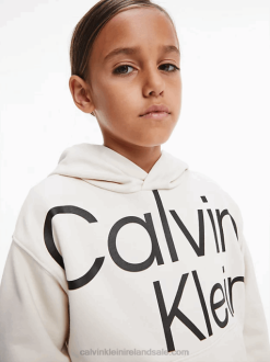 F64Z2399 Eggshell Women Calvin Klein Milano Jersey Cropped Hoodie