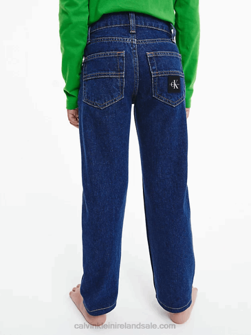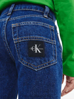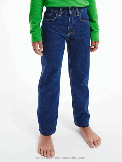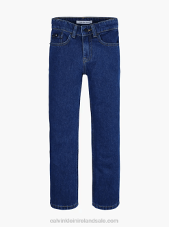 F64Z6376 Stone Wash Dark Blue Kids Calvin Klein Mid Rise Straight Jeans