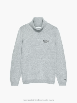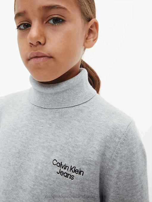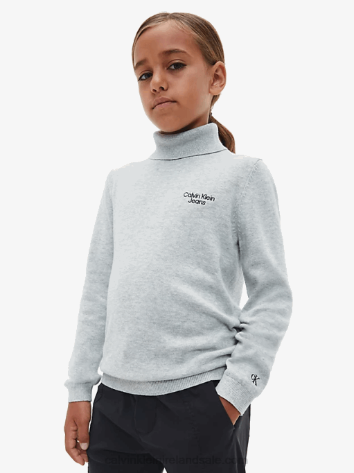 F64Z6388 Light Grey Heather Kids Calvin Klein Combed Cotton Roll Neck Jumper