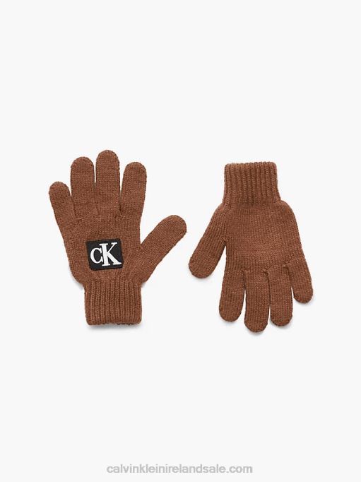 F64Z6397 Milk Chocolate Kids Calvin Klein Unisex Logo Gloves