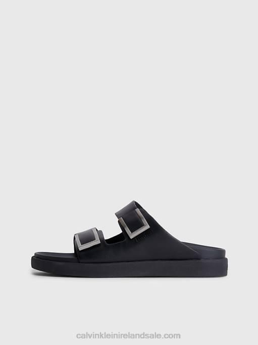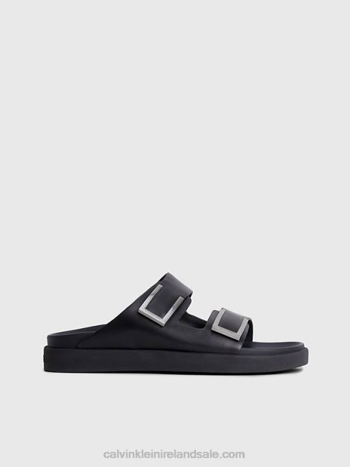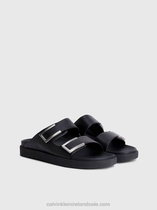 F64Z640 Black Women Calvin Klein Leather Sandals
