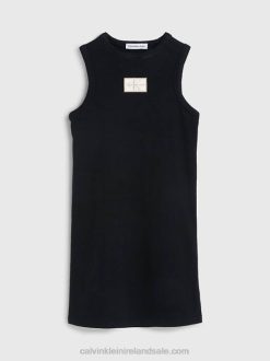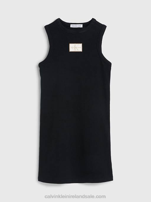 F64Z6427 Black Kids Calvin Klein Ribbed Sleeveless Dress