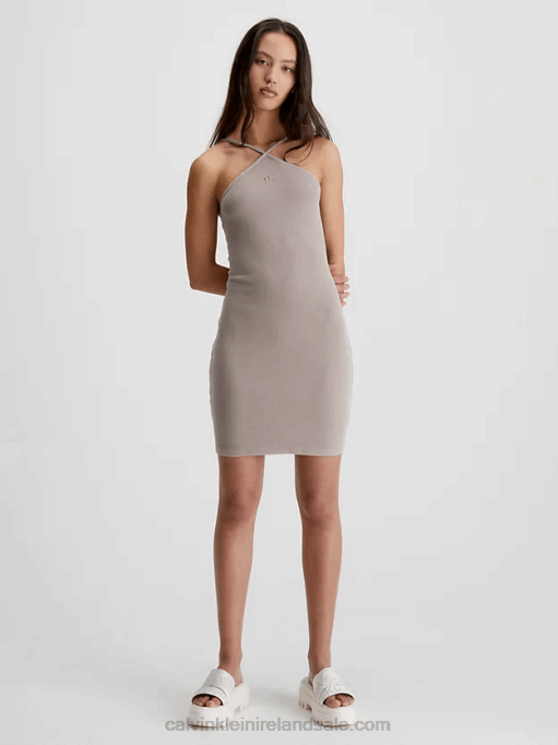 F64Z88 Shitake Women Calvin Klein Slim Ribbed Monogram Tank Dress