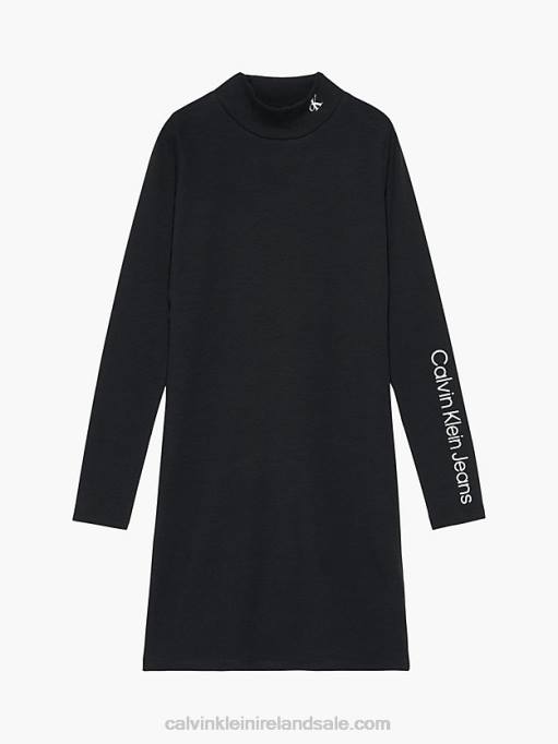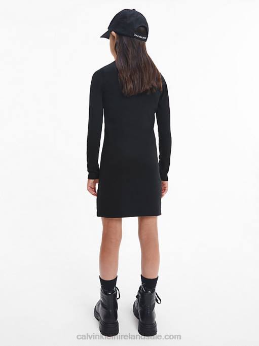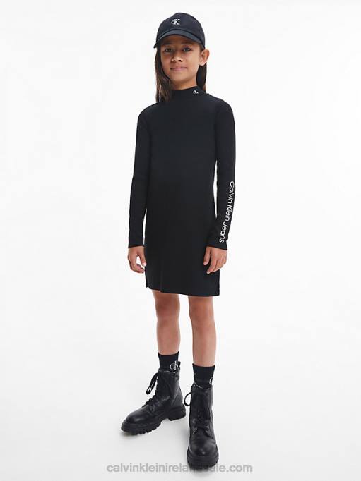 F64Z6562 Black Kids Calvin Klein Ribbed Logo Dress