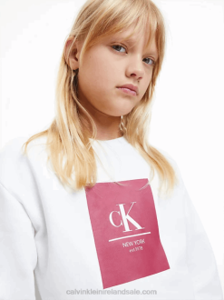 F64Z6569 Bright White Kids Calvin Klein Logo Sweatshirt