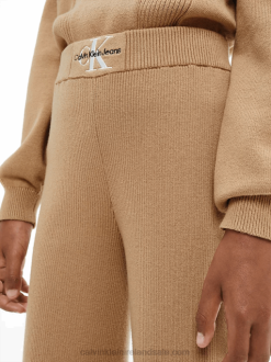 F64Z6573 Timeless Camel Kids Calvin Klein Organic Cotton Ribbed Trousers