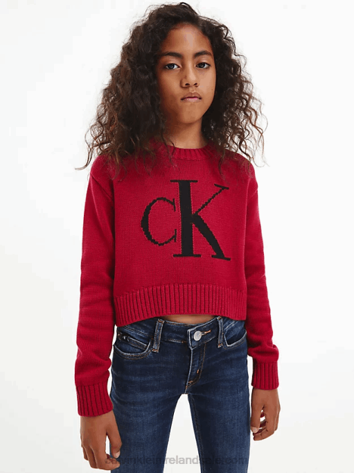 F64Z5802 Black Kids Calvin Klein Relaxed Cropped Logo Hoodie