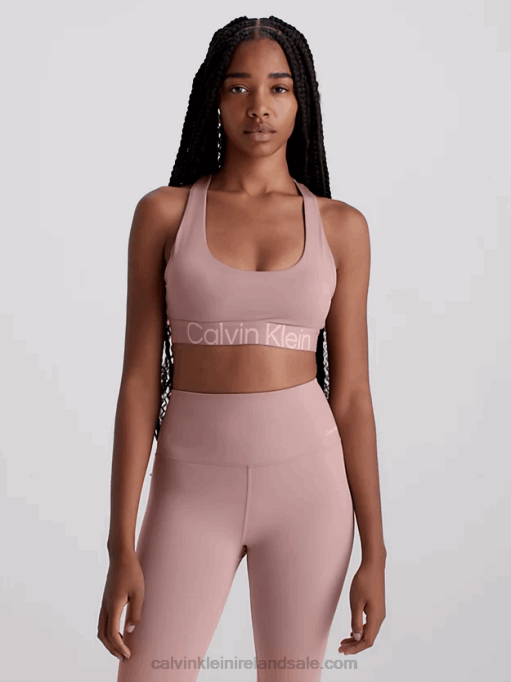F64Z66 Gray Rose Women Calvin Klein Medium Impact Sports Bra