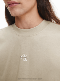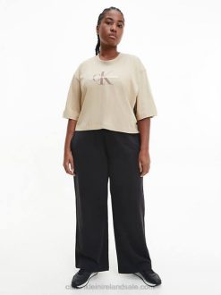F64Z1927 Travertine Women Calvin Klein Cropped Monogram T-shirt