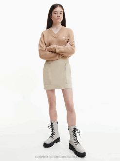 F64Z2076 Travertine Women Calvin Klein Oversized Trench Coat