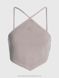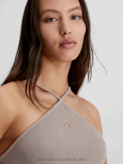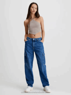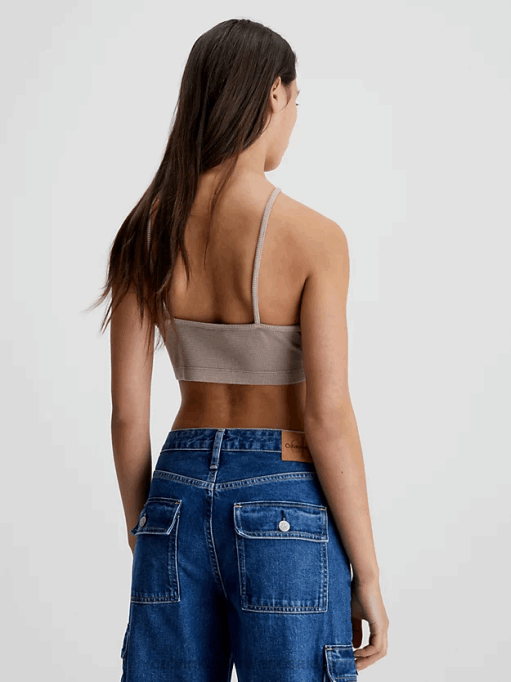 F64Z27 Denim Medium Women Calvin Klein Denim Zip Up Bralette Top