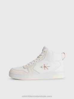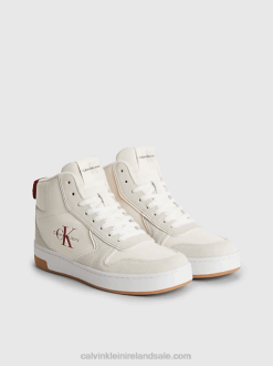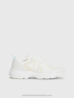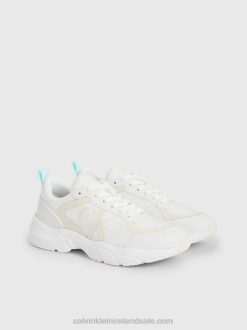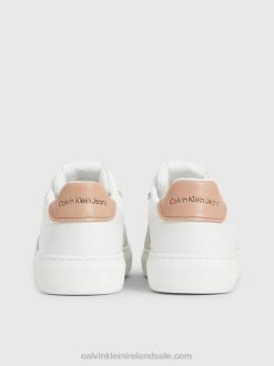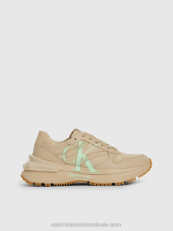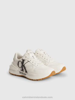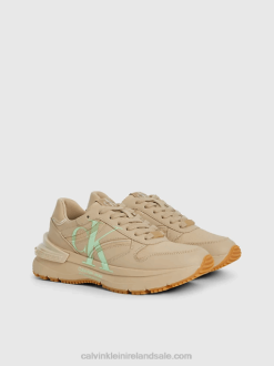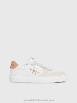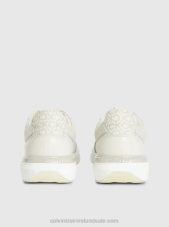 F64Z679 Dk Ecru/Silver Mink Mono Women Calvin Klein Leather Logo Trainers