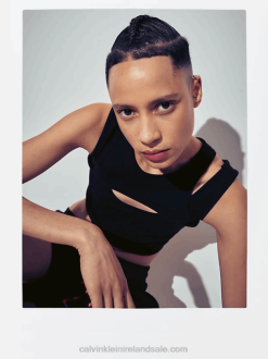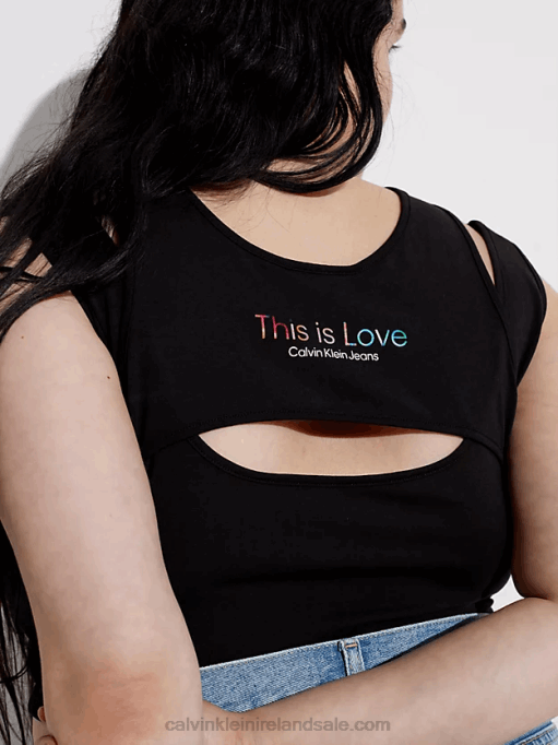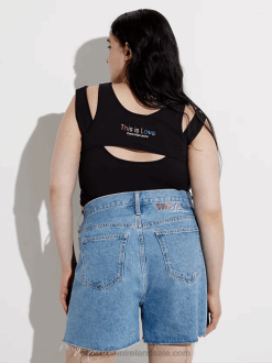F64Z47 Black Women Calvin Klein Plus Size Ribbed Monogram Tank Dress
