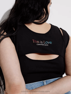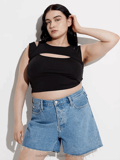 F64Z48 Black Women Calvin Klein Plus Size Long T-shirt Dress