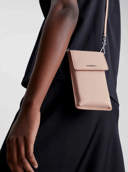 F64Z710 Cafe Au Lait Mono Women Calvin Klein Recycled Crossbody Phone Pouch