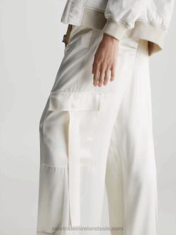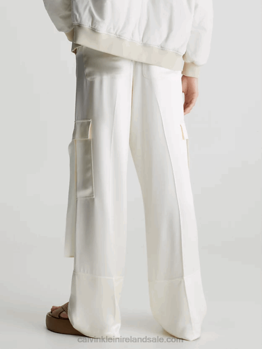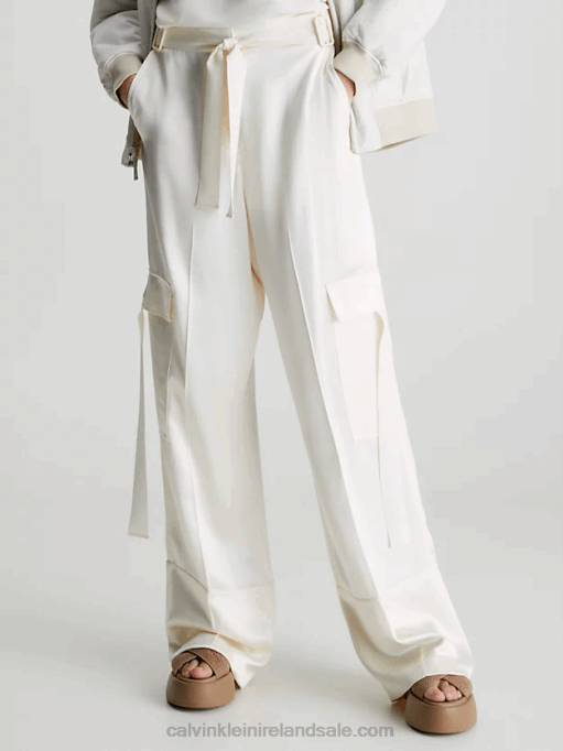 F64Z818 Smooth Beige Women Calvin Klein Linen Wide Leg Trousers