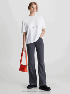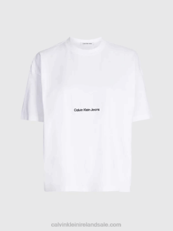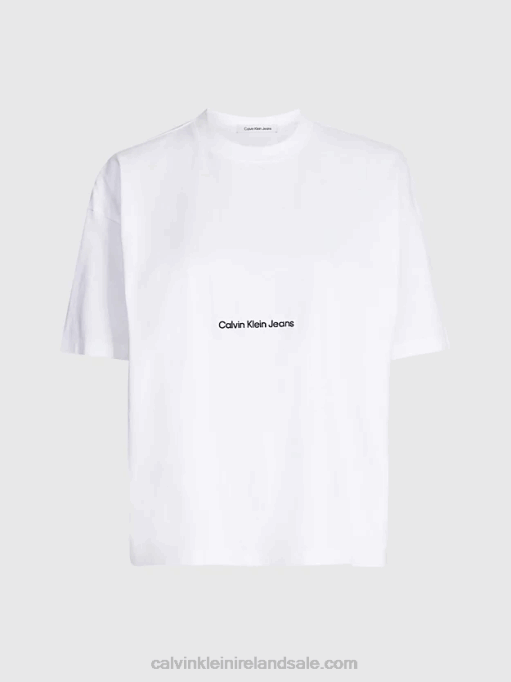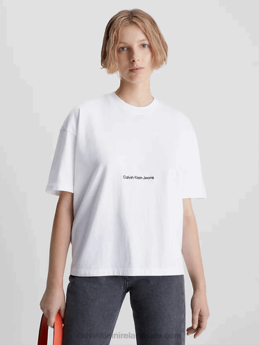 F64Z322 Vintage Ivory Women Calvin Klein Plus Size Logo T-shirt