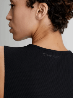 F64Z73 Black Women Calvin Klein Seersucker Stretch Cut Out Top