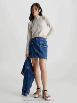 F64Z27 Denim Medium Women Calvin Klein Denim Zip Up Bralette Top