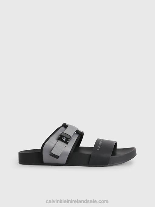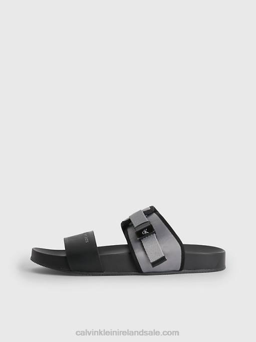 F64Z759 Black/Overcast Grey Women Calvin Klein Recycled Sandals