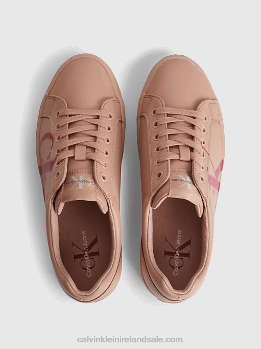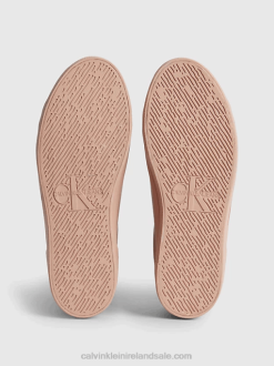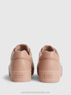 F64Z784 Cafe Creme/Merlot Women Calvin Klein Leather Platform Trainers