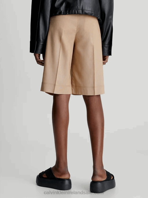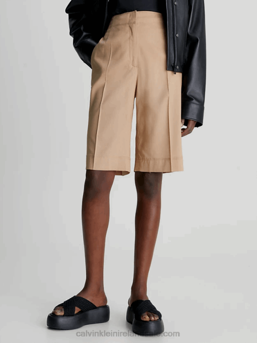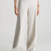 F64Z818 Smooth Beige Women Calvin Klein Linen Wide Leg Trousers