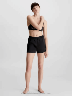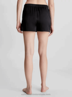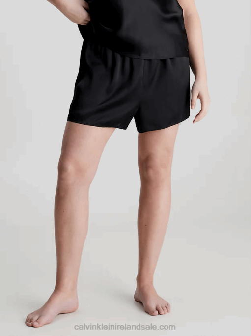 F64Z86 Black Women Calvin Klein Silk Pyjama Shorts