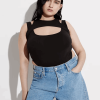 F64Z73 Black Women Calvin Klein Seersucker Stretch Cut Out Top