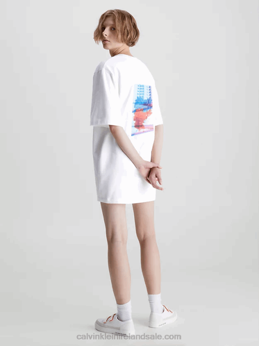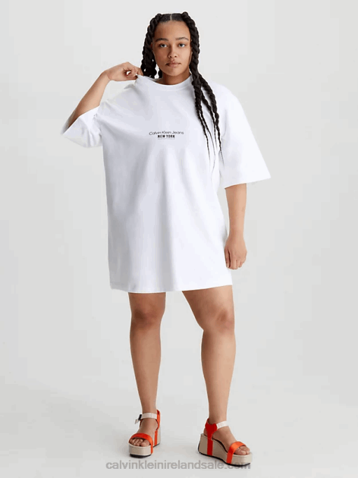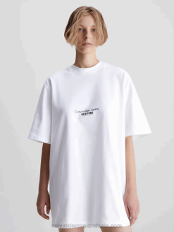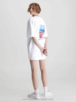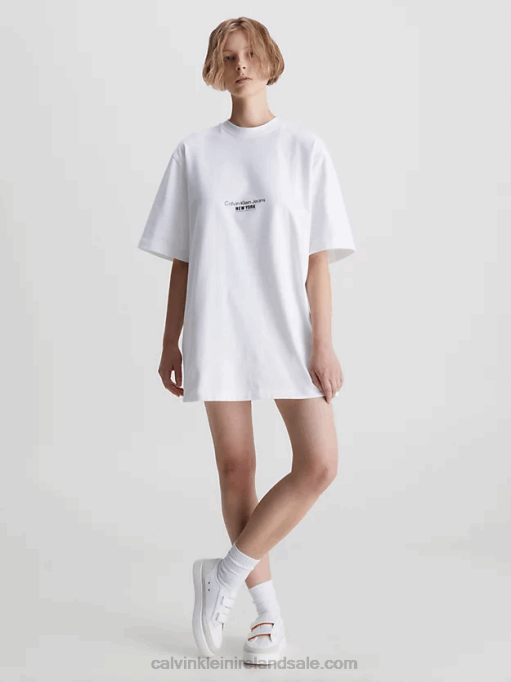 F64Z880 Bright White Women Calvin Klein Embroidered T-shirt Dress