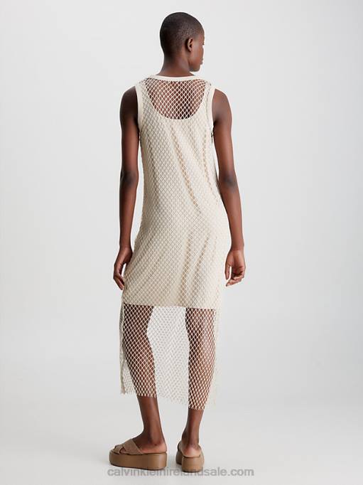 F64Z264 Black Women Calvin Klein Slim Sheer Crepe Tank Dress
