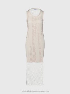 F64Z509 Bright White Women Calvin Klein Monogram Maxi T-shirt Dress