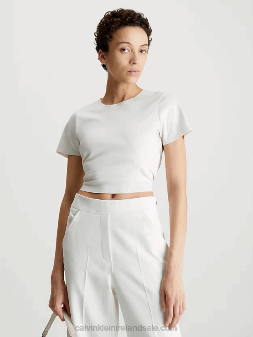F64Z73 Black Women Calvin Klein Seersucker Stretch Cut Out Top