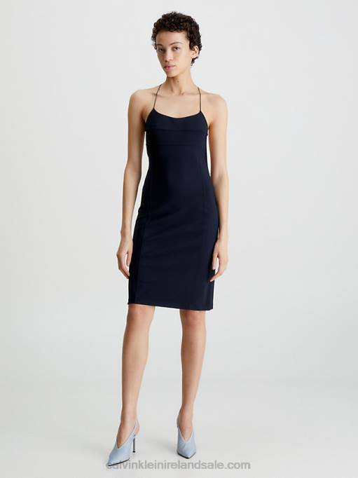 F64Z47 Black Women Calvin Klein Plus Size Ribbed Monogram Tank Dress