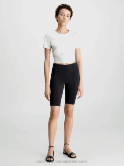F64Z73 Black Women Calvin Klein Seersucker Stretch Cut Out Top