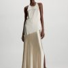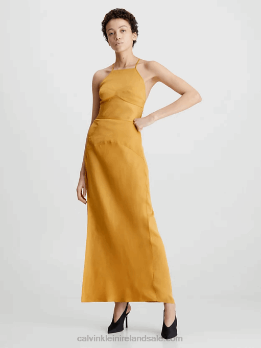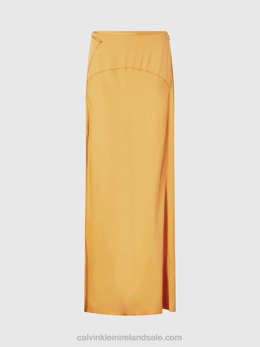 F64Z934 Vintage Gold Women Calvin Klein Slim Satin Maxi Skirt