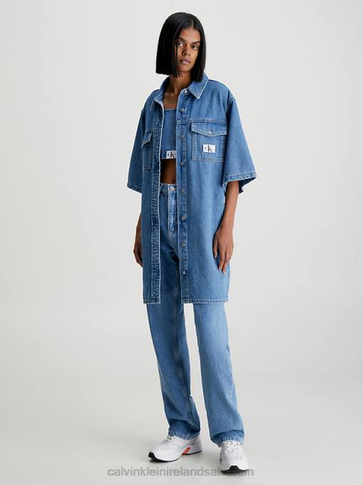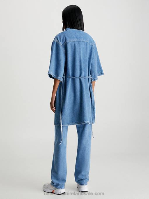 F64Z945 Mid Stone Blue Belt Women Calvin Klein Belted Denim Shirt Dress